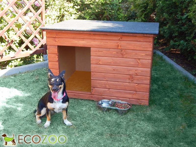 Grube deski (18-20mm), styropian o grubości 2cm + 3mm wewnętrzna płyta HDF zapewni Twojemu czworonożnemu przyjacielowi wygodny a przede wszystkim ciepły dom. Dzięki podnoszonemu dachowi (dach zamontowany jest na zawiasach) można w łatwy sposób przygotować legowisko lub tez posprzątać. Dodatkowo dach pokryty jest papą bitumiczną dzięki czemu jest w 100% wodoodporny. Dzięki zastosowaniu skośnego dachu woda oraz śnieg na nim nie zalegają. Kolejnym atutem są legary przymocowane do podłogi, stąd podłoga nie leży bezpośrednio na ziemi.