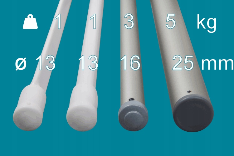 Tyče sú vyrobené z galvanicky chránených hliníkových rúr s priemerom. 16 mm