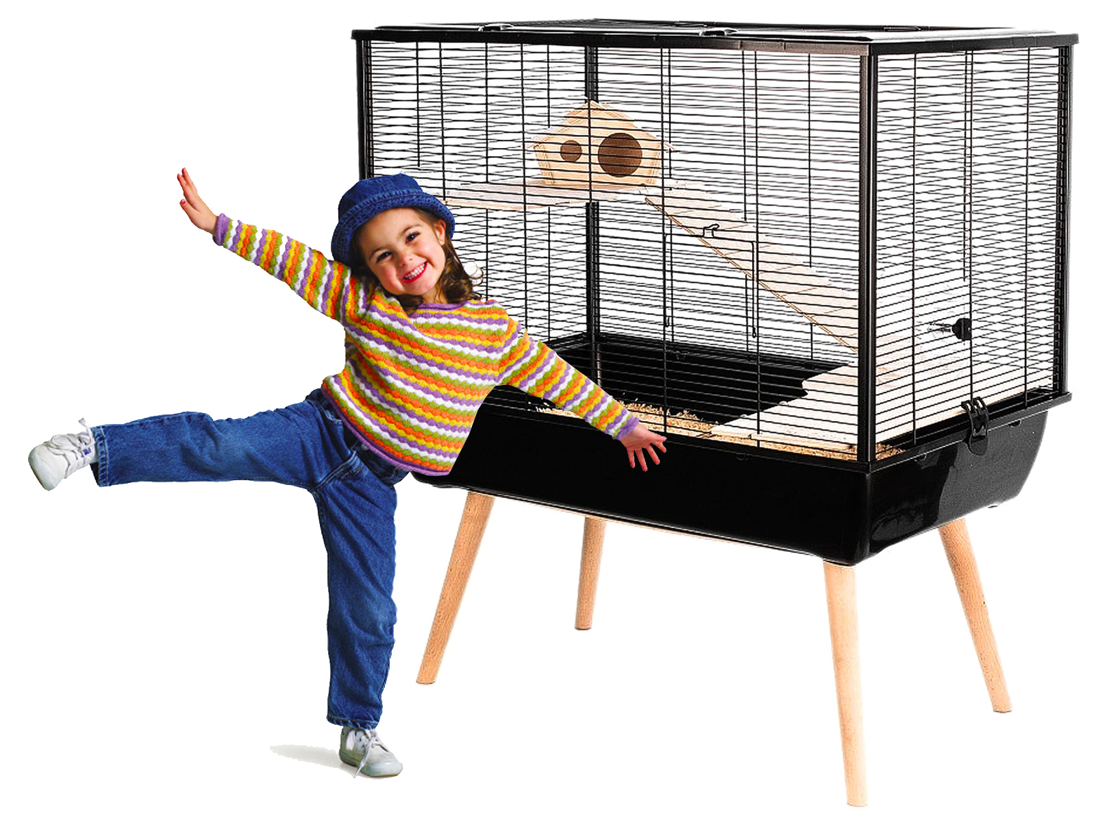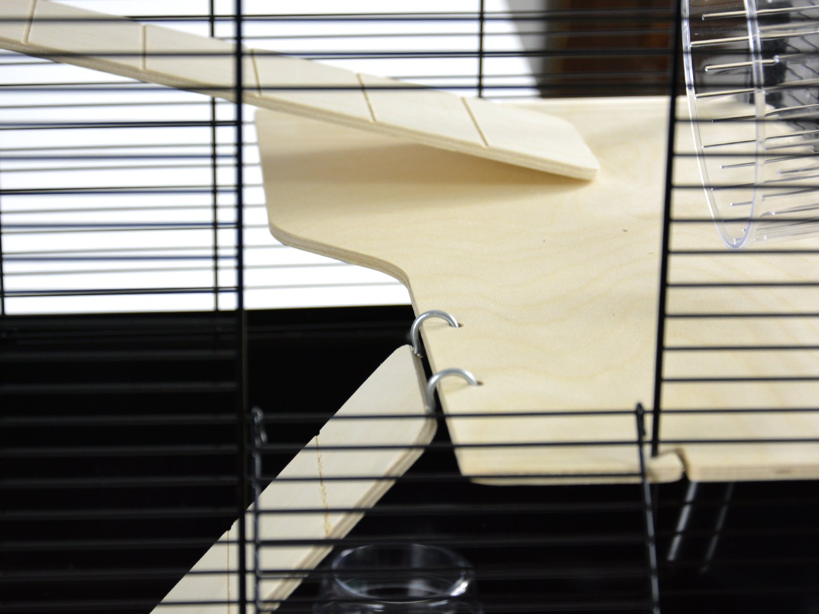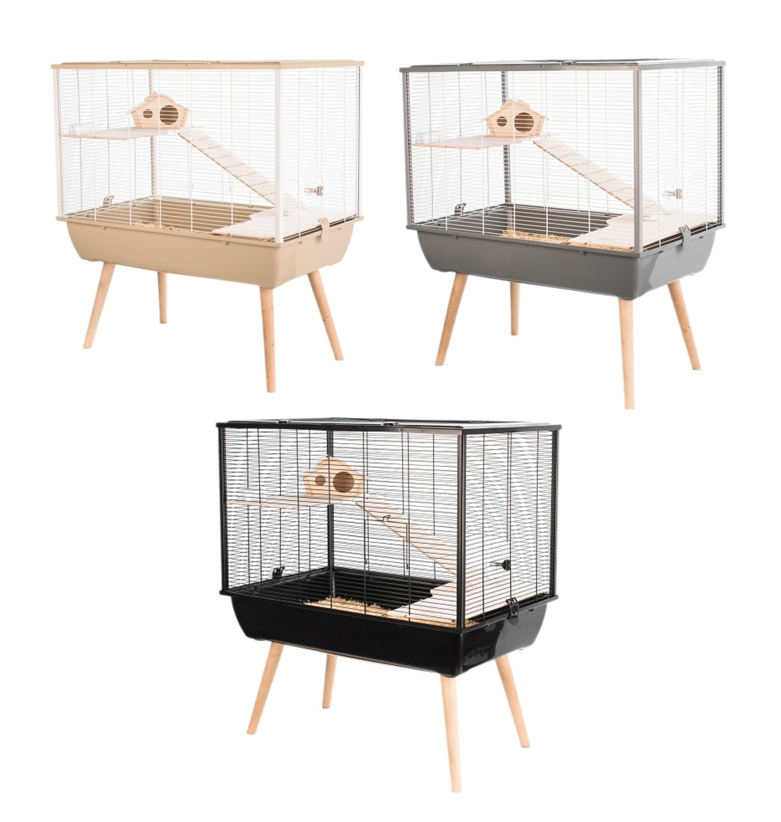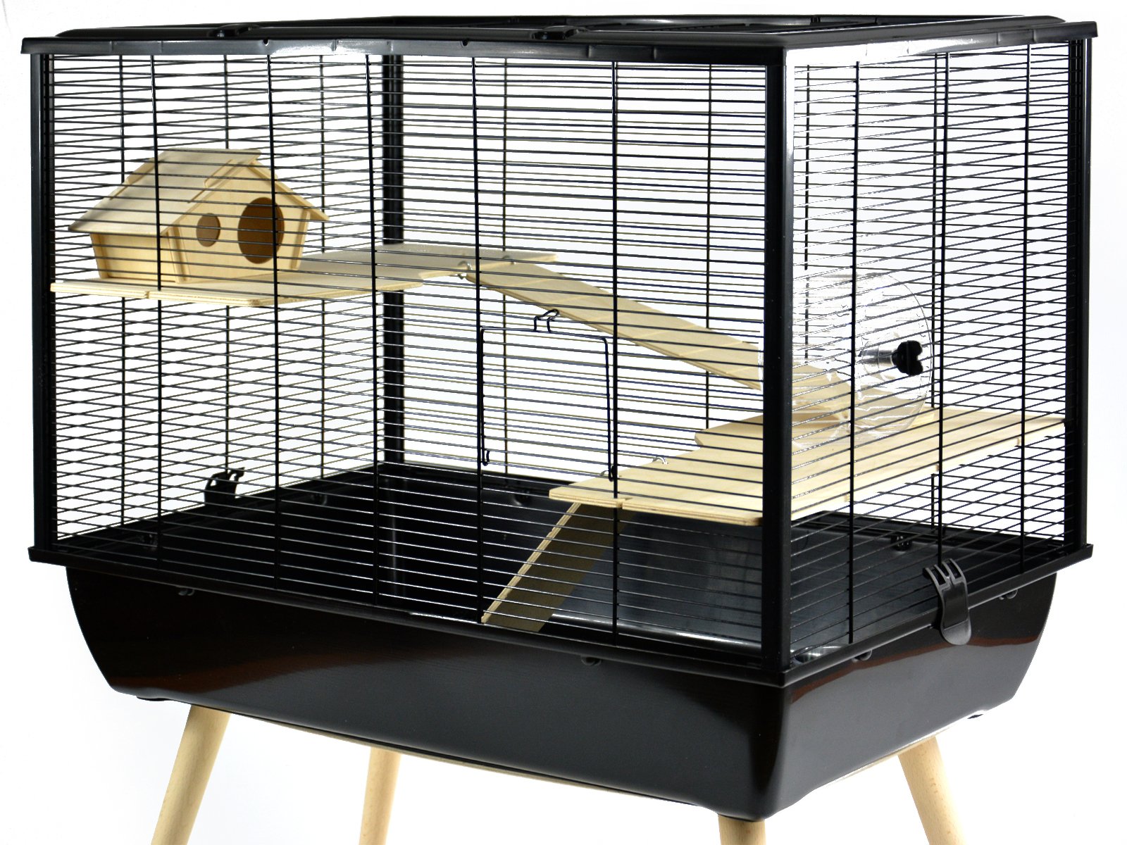 - nohy umožňujú zdvihnutie klietky, čo pomáha udržiavať čistotu a poskytuje zvieraťu lepší výhľad na okolie
