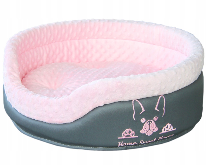 Legowisko z haftowanym psem popiel/róż - kod produktu piesek 16