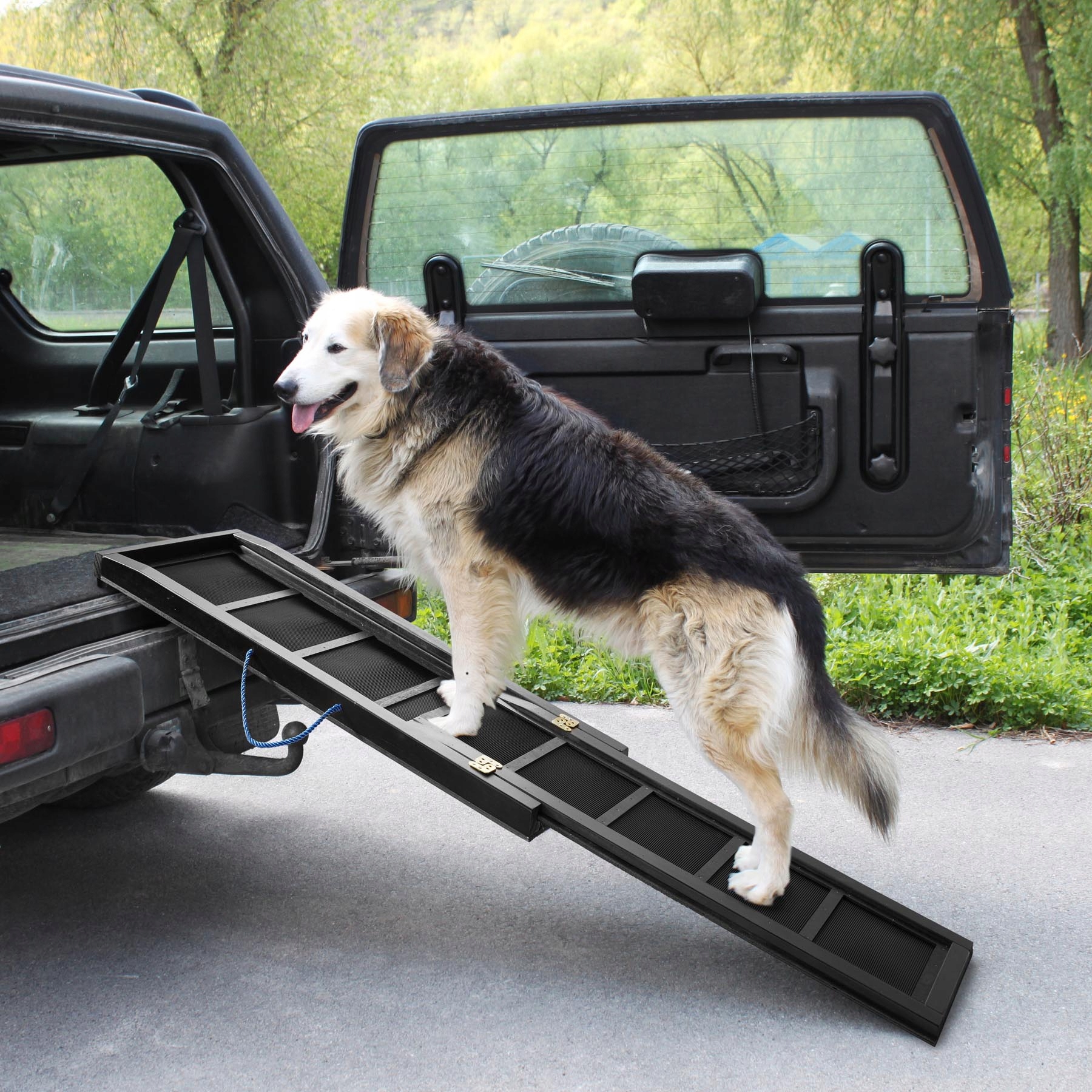 Rampa idealnie sprawdzi się w przypadku starszych psów, psów z chorymi stawami oraz małych czworonogów, którym ułatwi wsiadanie i wysiadanie z samochodowego bagażnika. Po wykorzystaniu rampę można złożyć i schować w samochodzie nie tracąc przy tym praktycznie wolnej przestrzeni. Gumowe podstawki zamontowane od spodu ochronią Twój samochód przed porysowaniem i zapewnią stabile oparcie rampy o krawędź bagażnika.