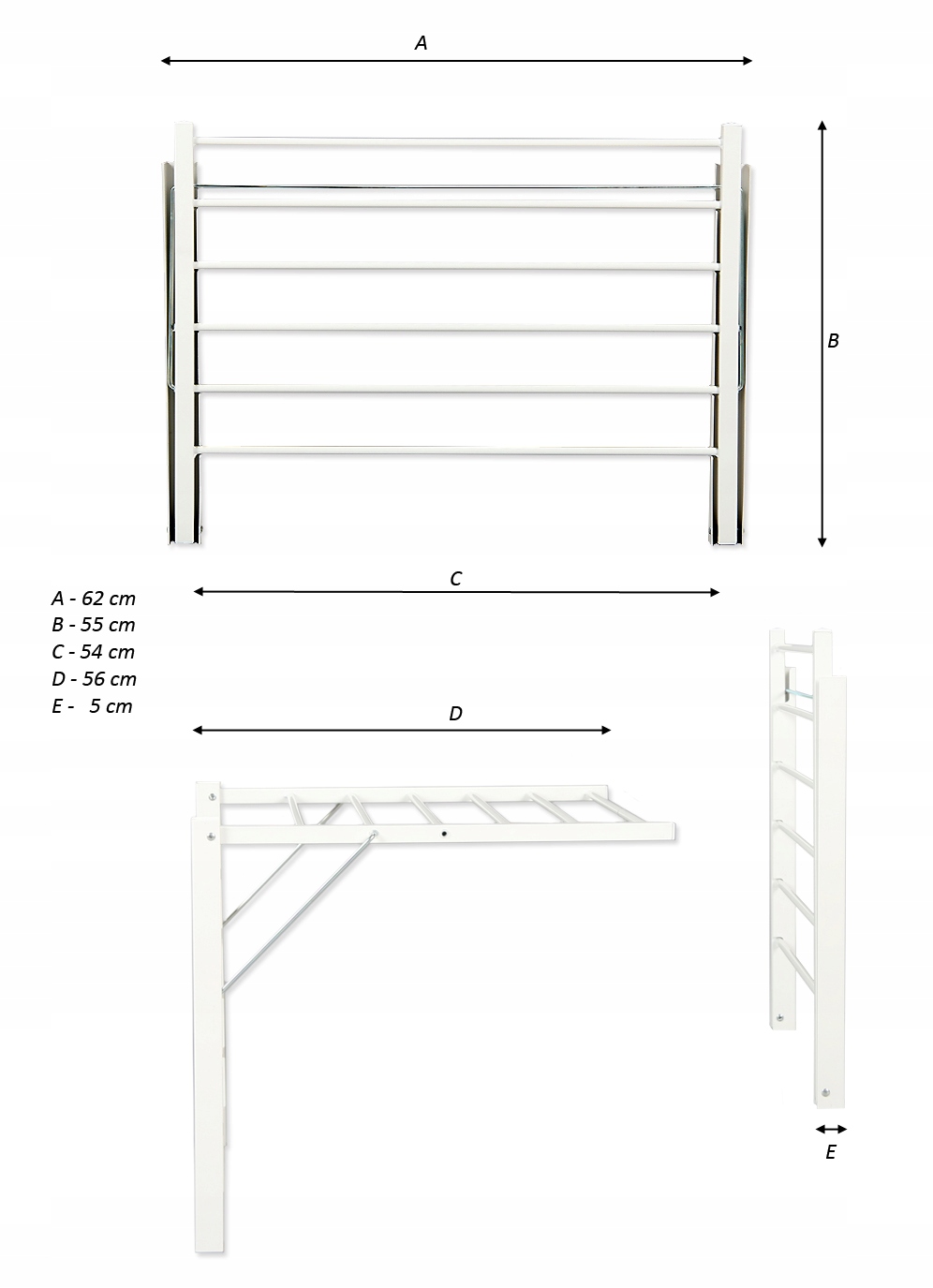 Nastavením 4 rôznych polôh môžete sušičku prispôsobiť priestoru a vašim vlastným potrebám. Má šesť závesných tyčí po 60 cm.
