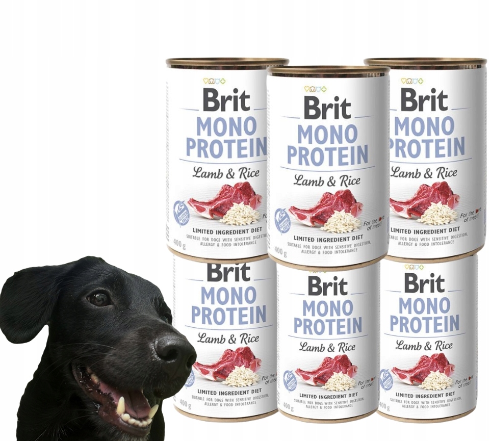 - 24 szt. Brit MONO PROTEIN pies puszka Lamb&Brown Rice 400g