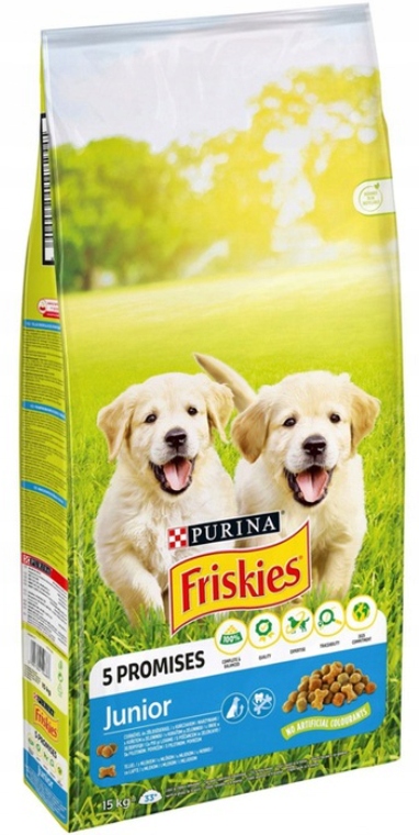 PURINA Friskies Junior to pełnoporcjowa karma dla szczeniąt powyżej 6 tygodni.