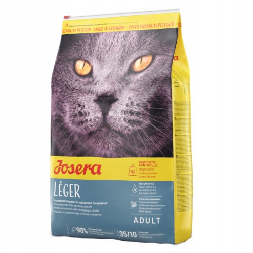 Josera Léger z obniżoną zawartością tłuszczu i zwiększoną ilością błonnika jest odpowiednią karmą dla kotów nieaktywnych oraz kotów z nadwagą, np. po zabiegu kastracji. Josera Léger jest również zalecana przez weterynarzy w przypadku, gdy otyłość jest spowodowana przejadaniem się lub brakiem ruchu.