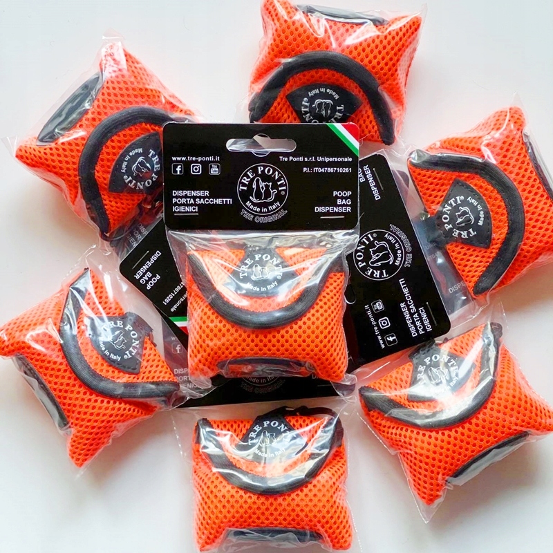 Komfortowy POJEMNIK dozownik na woreczki do odchodów psa - marki TRE PONTI - pomarańczowy