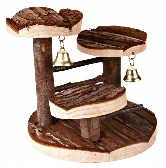Drewniane schodki wykonane są w 100% z naturalnego drewna liściastego i iglastego. Zabawka składa się z trzech platform umieszczonych na różnej wysokości. Drewniana zabawka dla chomika lub myszy pozwala zwierzątku na ćwiczenie zwinności i uwolnienie nadmiaru energii.