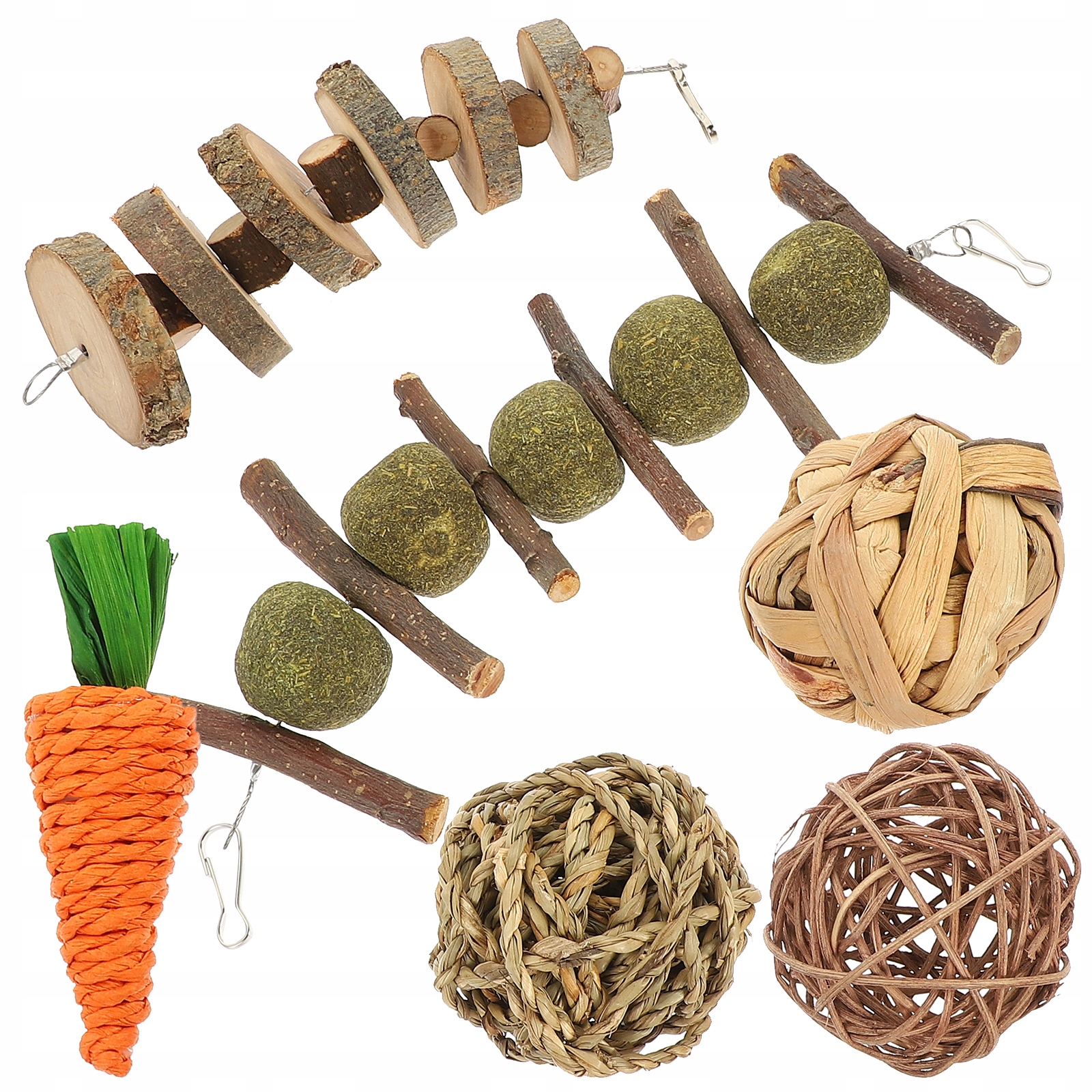 Produkty te są nie tylko zabawnymi zabawkami, ale także przydatnymi narzędziami do szlifowania zębów. Aby zapewnić zdrowy wzrost zębów małych zwierząt domowych, całym sercem opiekuj się swoim zwierzakiem, takim jak króliki, świnki morskie, chomiki, szczury, ptaki i inne małe zwierzęta domowe.