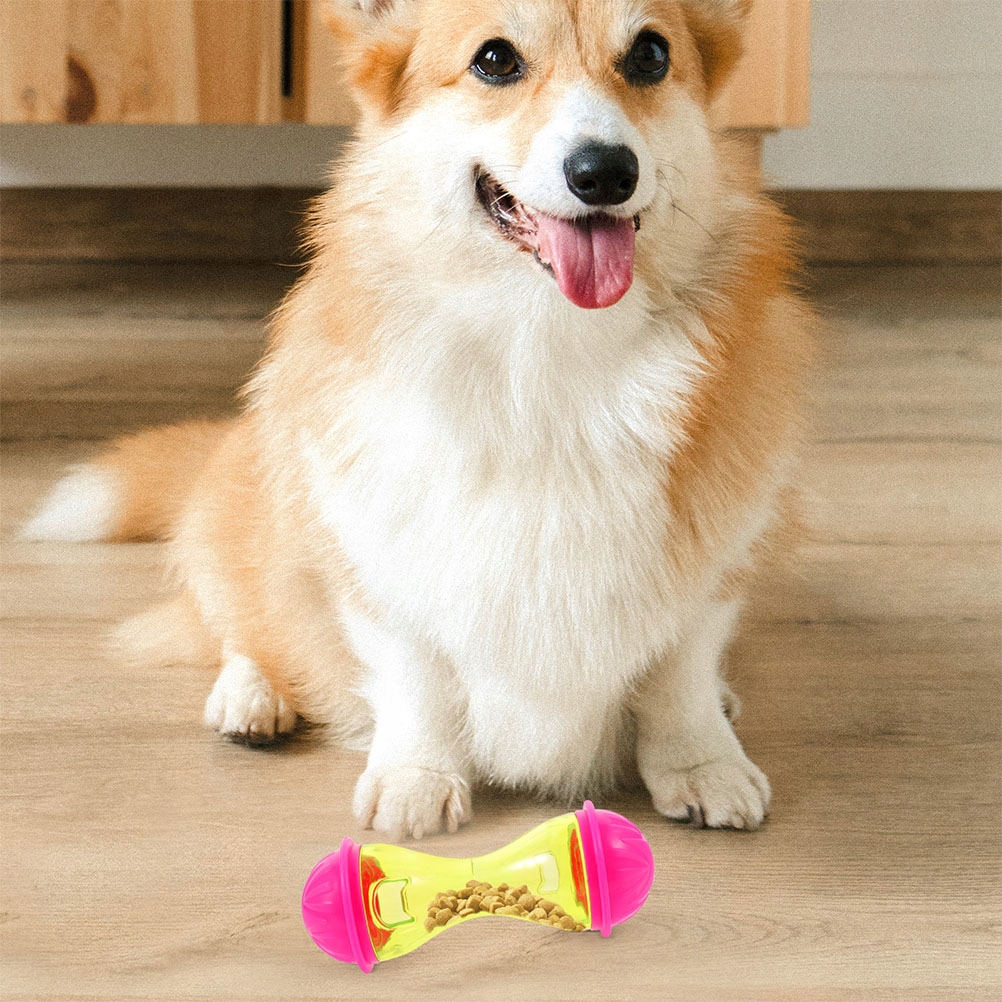 Nieszczelny projekt pozwala zwierzętom jeść podczas zabawy, co wzbudza zainteresowanie psa zabawą.