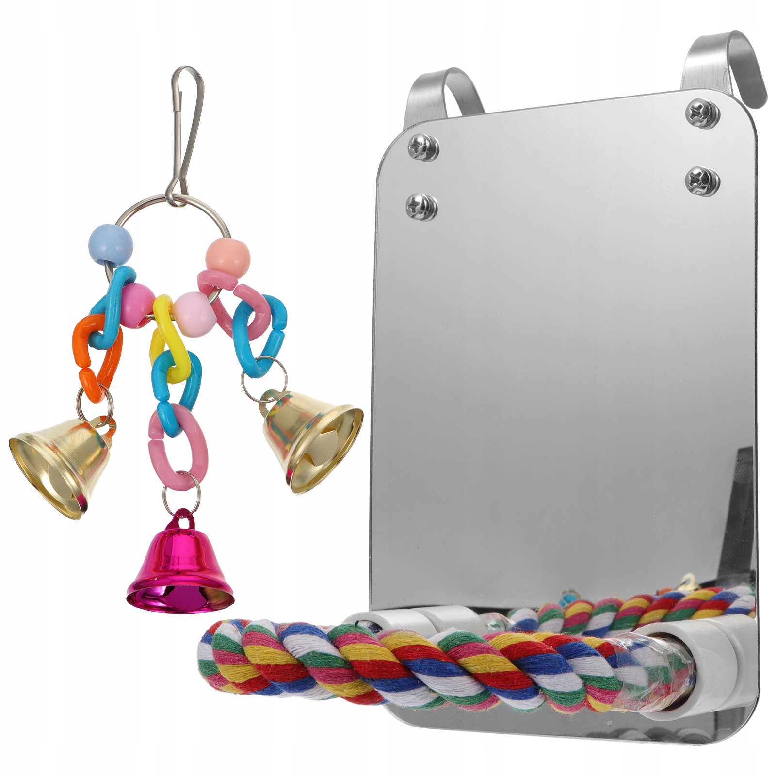 - Hračky pre exotické vtáctvo - 2 ks. Lustro pre domáce vtáky s stojanom