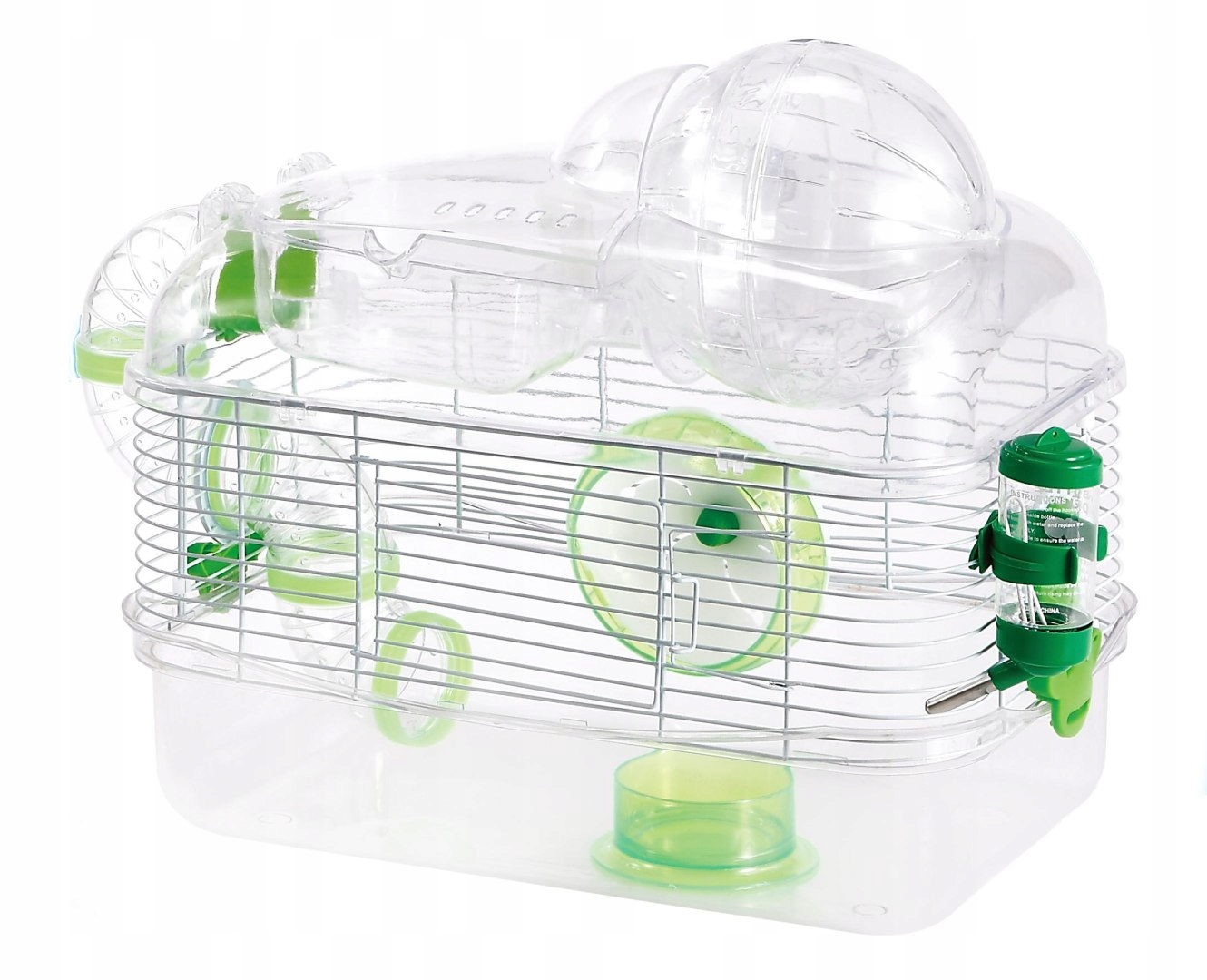 Klasyczna klatka druciana dla chomika, wyposażona dodatkowo w kołowrotek, miskę, kulę, półkę i poidełko. Prosty kształt i kompaktowe wymiary sprawiają, że będzia pasowała do każdego wnętrza.