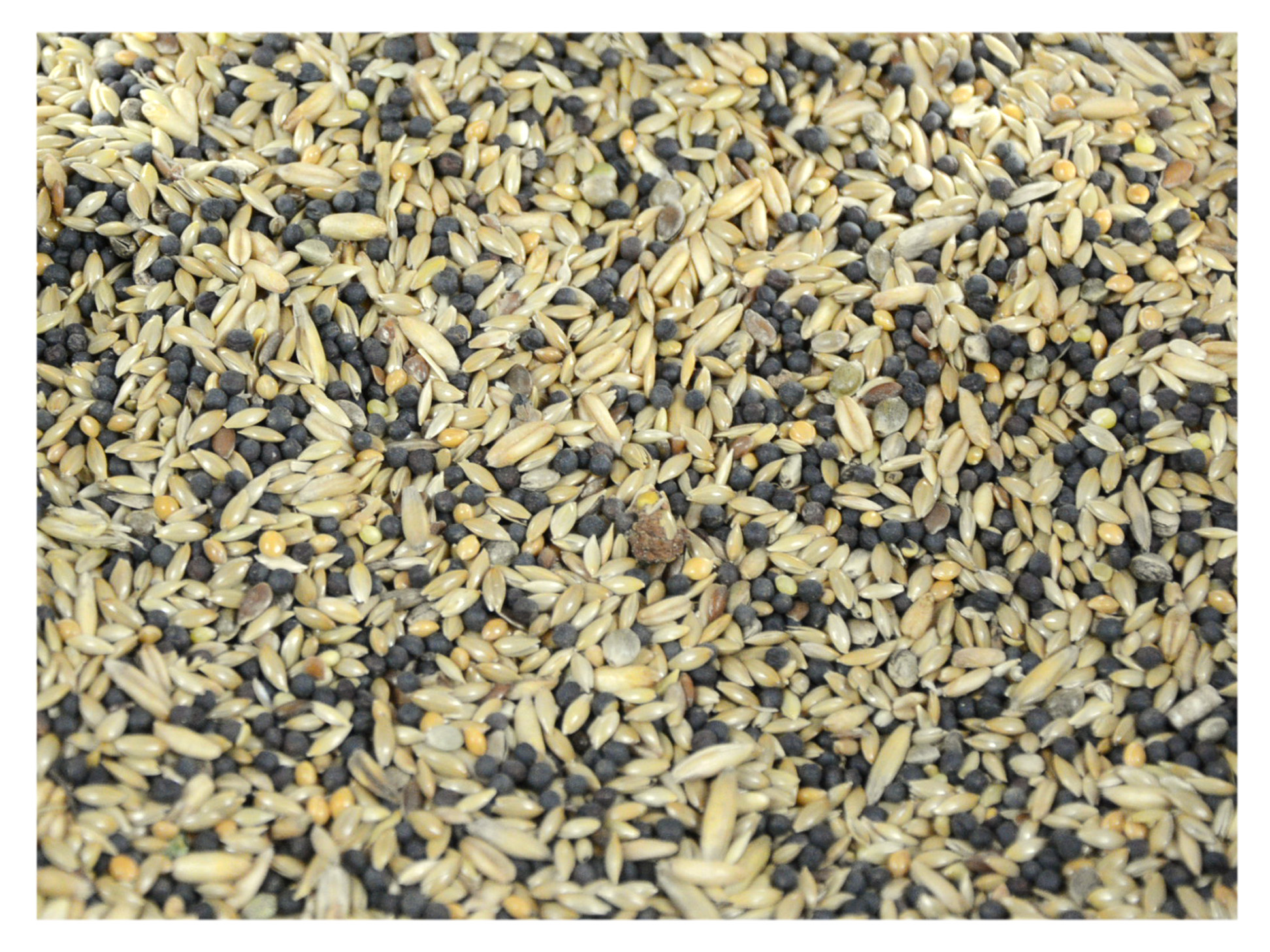 SKŁAD: rzepik, mozga kanaryjska, proso żółte, proso czerwone, siemię lniane, rzepak jary, obłuszczony owies, murzynek, sudan, mieszanka traw, konopi