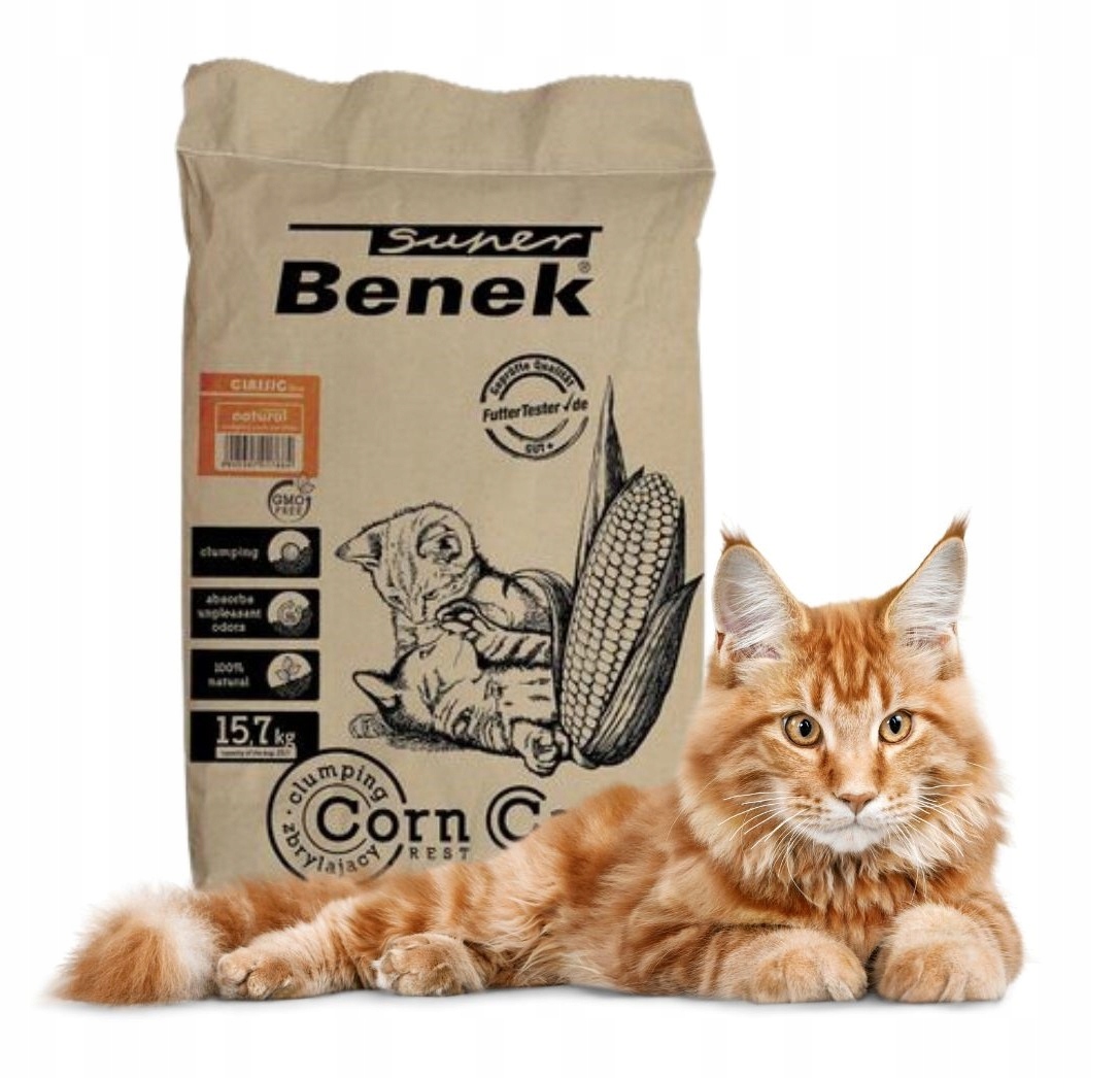 Podłoża BENEK CORN są bezpieczne dla kota w przypadku spożycia.