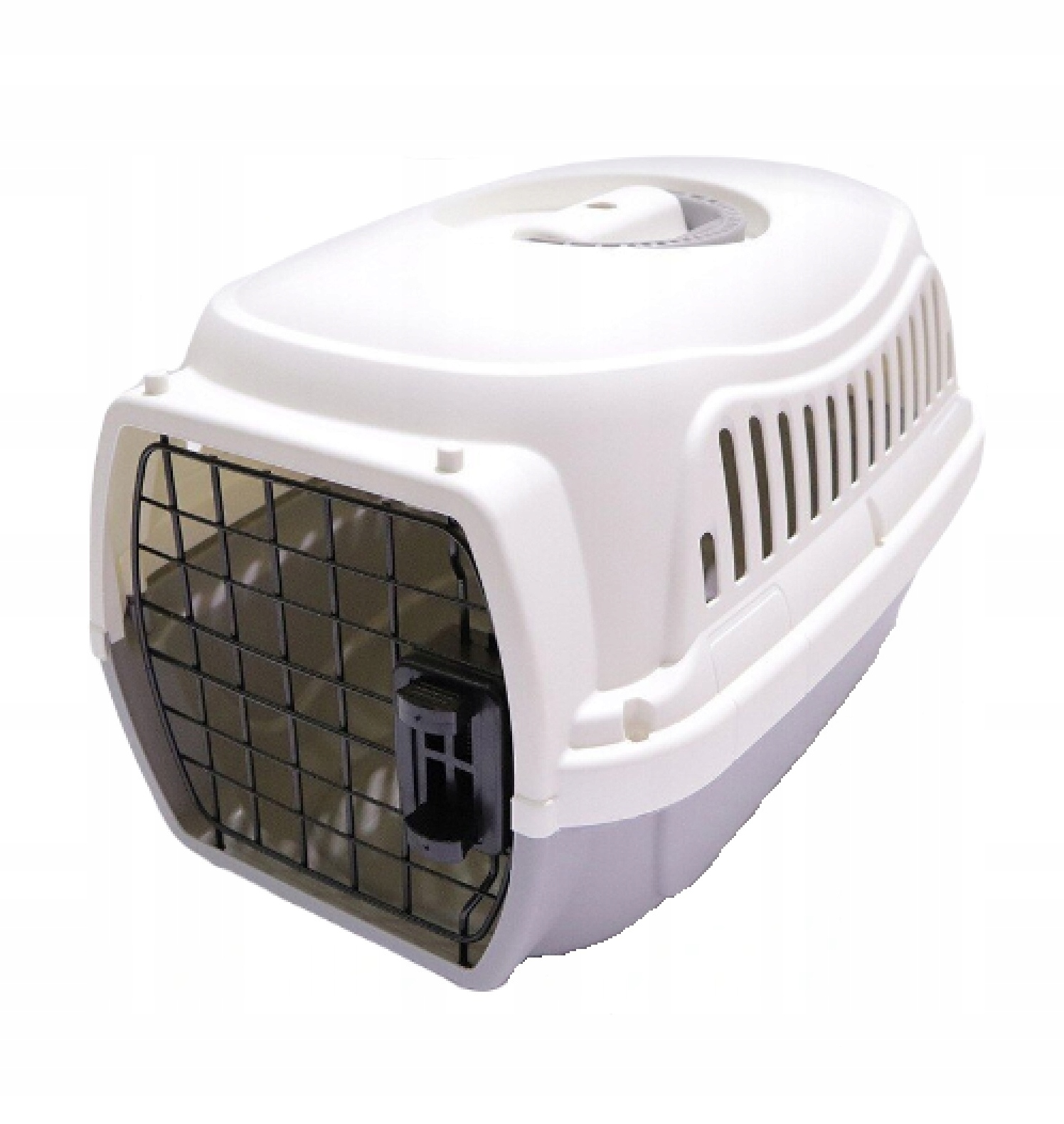 Solidny, plastikowy transporter do przewozu małego psa lub kota w samochodzie, pociągu lub samolotem.
