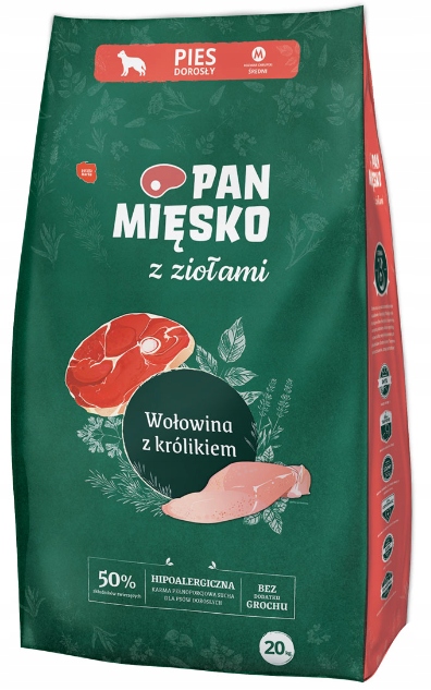 Pan Mięsko z ziołami to propozycja dla czworonogów i ich właścicieli, którzy poszukują karmy przygotowanej ze starannie dobranych składników. Dodatek kompozycji ziół tworzy aromatyczną porcję smaku i zdrowia dla Twojego psa.