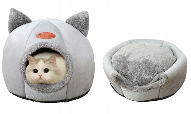 Legowisko okrągła budka z uszkami 2w1 dla kota/psa