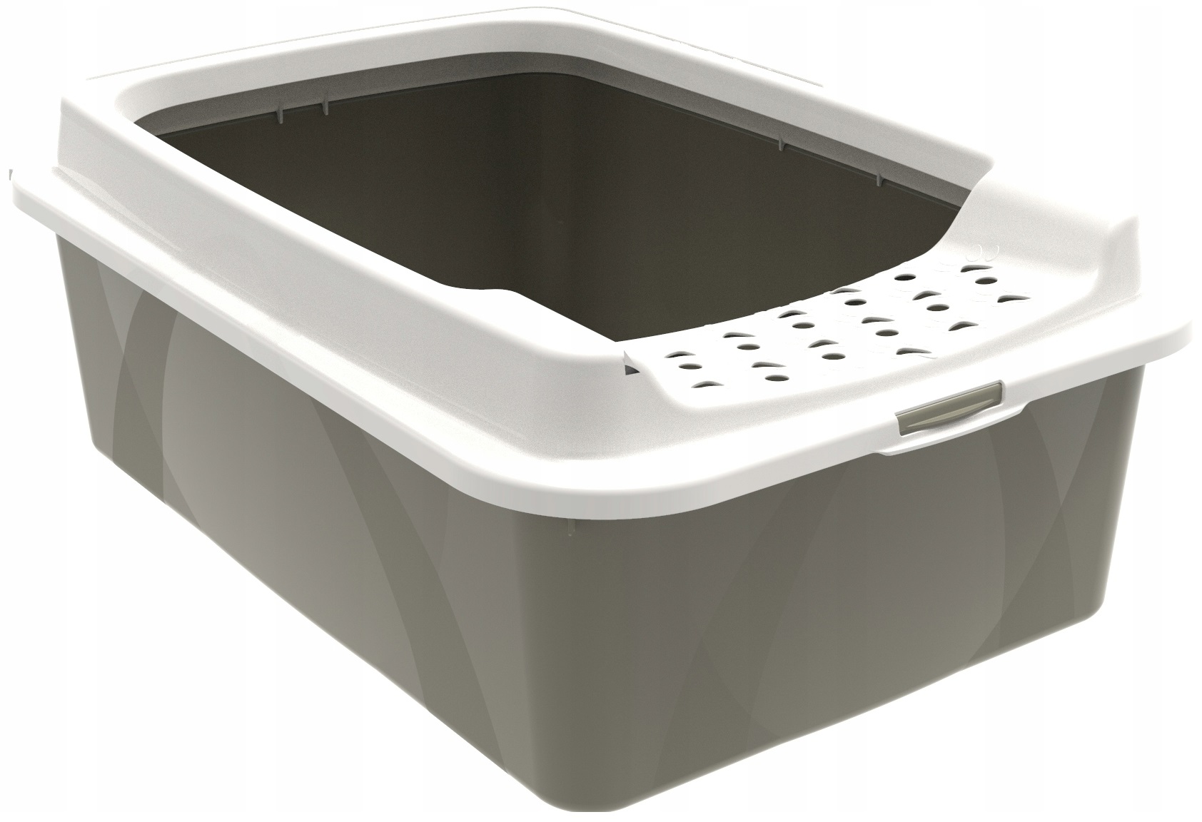 - Nowoczesna kuweta z wejściem u góry. Odpowiednia również dla dużych ras dzięki dużemu otworowi. Pojemnik jest szeroki i głęboki, co pozwala każdemu kotu znaleźć swoje miejsce. Wysokie boczne ściany zapewniają ochronę przed przeciekaniem. Pokrywa kuwety zaprojektowana tak, aby jak najmniej żwirku wydostawało się na zewnątrz wraz z kocimi łapami dzięki małym otworom w kształcie kocich łapek. Zdejmowana pokrywa umożliwia łatwe czyszczenie.