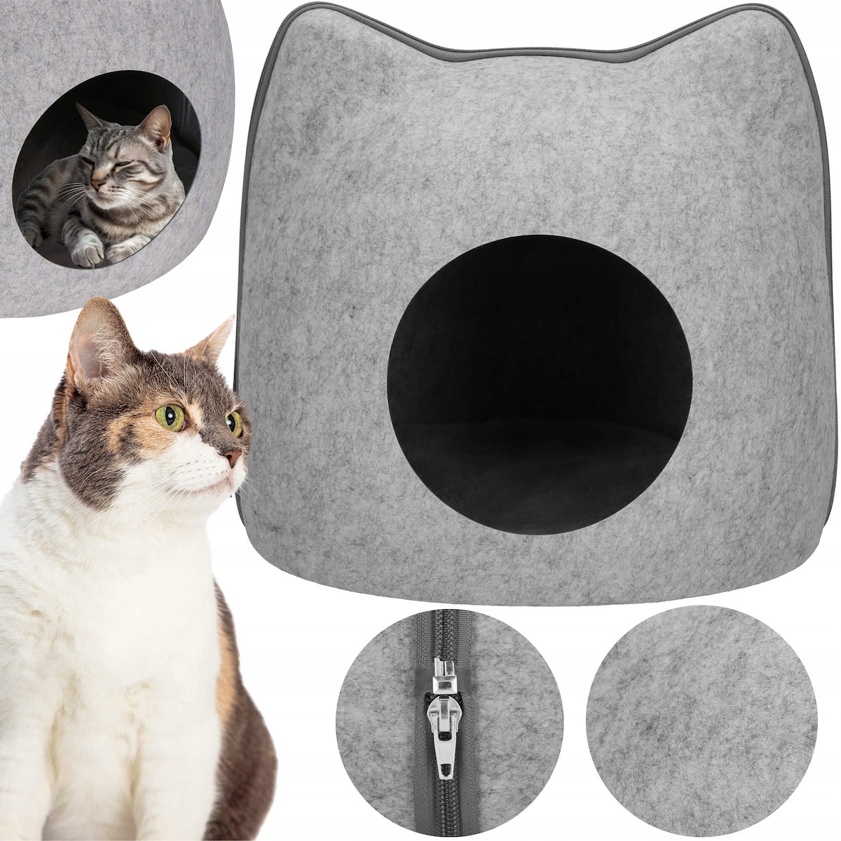 Ogromną zaletą kojca jest możliwość złożenia - budka składa się z dwóch części połączonych zamkiem błyskawicznym. Po ich rozdzieleniu i złożeniu domek zajmuje niewiele miejsca, dzięki czemu można go łatwo przechować i transportować, bez trudu zmieścisz go w bagażniku samochodu. Jeśli zabierzesz swojego kota na wakacje, możesz zabrać również jego ulubione legowisko!