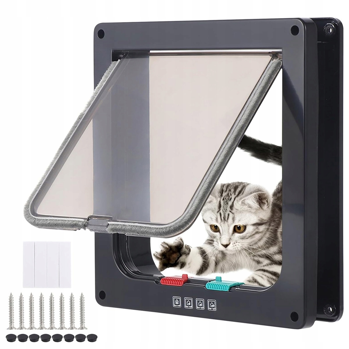 . DRZWI KLAPKA KOTA PSA CZARNY 4 SPOSOBY WEJŚĆ CAT