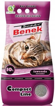 Super Benek Compact Lawenda to żwirek zawierający kompozycję lawendy o przyjemnym i uspokajającym zapachu. Olejki lawendy mają ponadto różnorakie zastosowanie, m.in. działają aseptycznie oraz likwidują napięcie nerwowe. Polecany szczególnie dla zwierząt młodych, bardzo ruchliwych, często przebywających na zewnątrz.