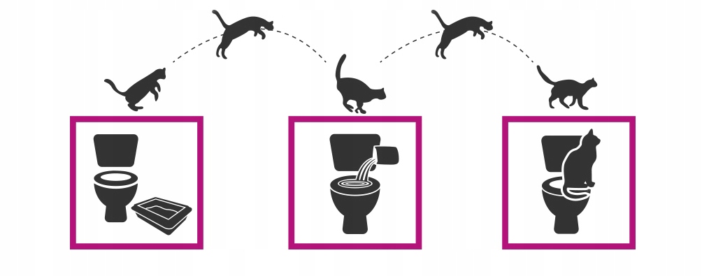 Zanim zamontujemy nakładkę powinniśmy najpierw przyzwyczaić kota do nowego otoczenia jakim jest toaleta. Po przeniesieniu kuwety kota do toalety, kot zacznie kojarzyć toaletę z miejscem do załatwiania swoich potrzeb i będzie tam wchodzić intuicyjnie.