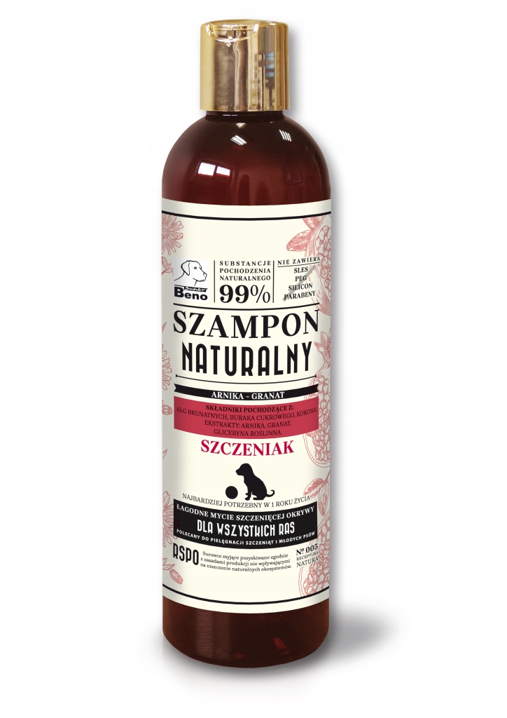Szczenięta mają o wiele delikatniejszą skórę, a ich sierść ma inną strukturę niż psów dorosłych. Jest to niezależne od tego, czy należą do przedstawicieli ras długo, krótko czy szorstkowłosych. W pierwszych miesiącach ich sierść jest puszysta i miększa niż docelowo. Dopiero z czasem, gdy szczenięcy puch wypada, zastępuje go sierść docelowa. Dlatego szampon Super Beno dla szczeniaków jest wyjątkowo delikatny, bez mocnego zapachu i bez dodatków SSL, parabenów czy silikonów. Uzyskano to dzięki zastosowaniu składników myjących pozyskiwanych z surowców naturalnych, roślinnych. Dodatkowo szampon silnie nawilża.