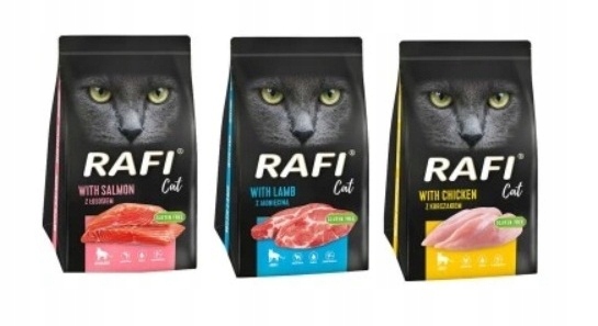 Pełnowartościowa karma dla kotówRAFI CAT została przygotowana z najwyższą starannością, o gwarancji świeżości i doboru najlepszych składników potrzebnych do prawidłowego funkcjonowania organizmu Twojego zwierzaka.