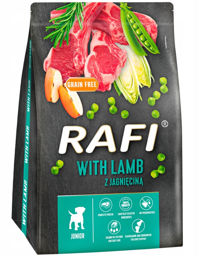 Zastanawiasz się jakimi produktami urozmaicić codzienną dietę szczeniąt i młodych psów? Sucha karma Rafi z jagnięciną to idealne rozwiązanie.
