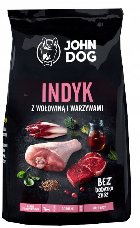 John Dog ADULT MAŁE RASY INDYK/ WOŁOWINA/WARZYWA 12kg