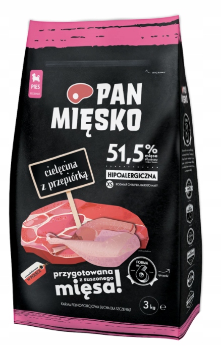 PAN MIĘSKO CIELĘCINA Z PRZEPIÓRKĄ DLA SZCZENIĄT 3KG CHRUPKI XS