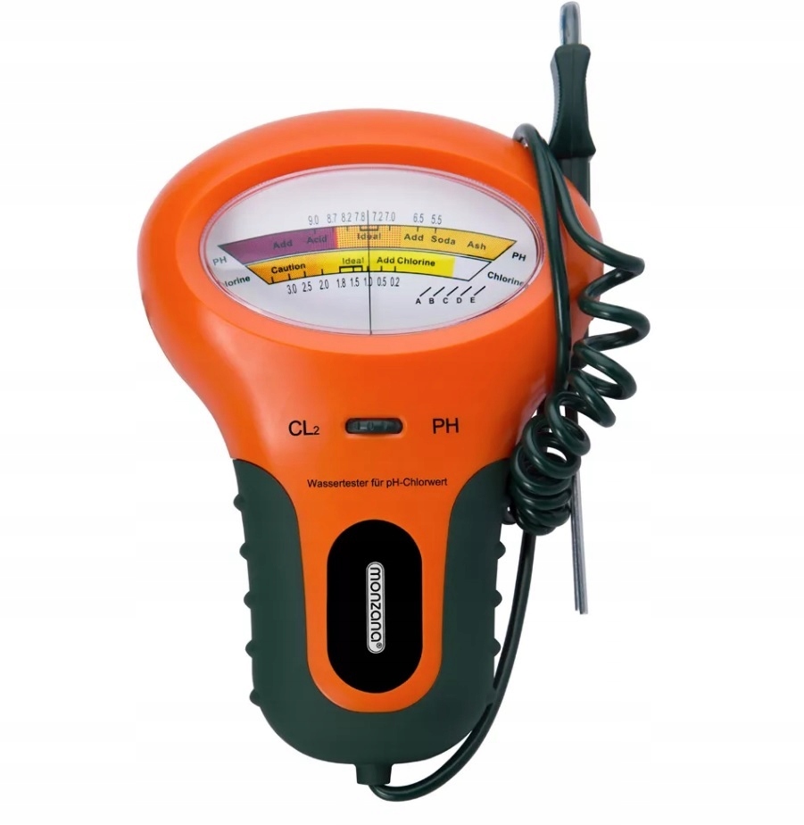 Wygodny tester wody szybko i łatwo podaje aktualną wartość PH i zawartość chloru w basenie. To najłatwiejszy sposób na określenie prawidłowych wartości. Oszczędzasz sobie skomplikowanych systemów testowania wody dzięki kombinacji kolorów. Monzana Water Tester 2.1 charakteryzuje się ergonomicznie ukształtowaną obudową, wyrazistym kolorem oraz niezawodnym i czytelnym wyświetlaczem.