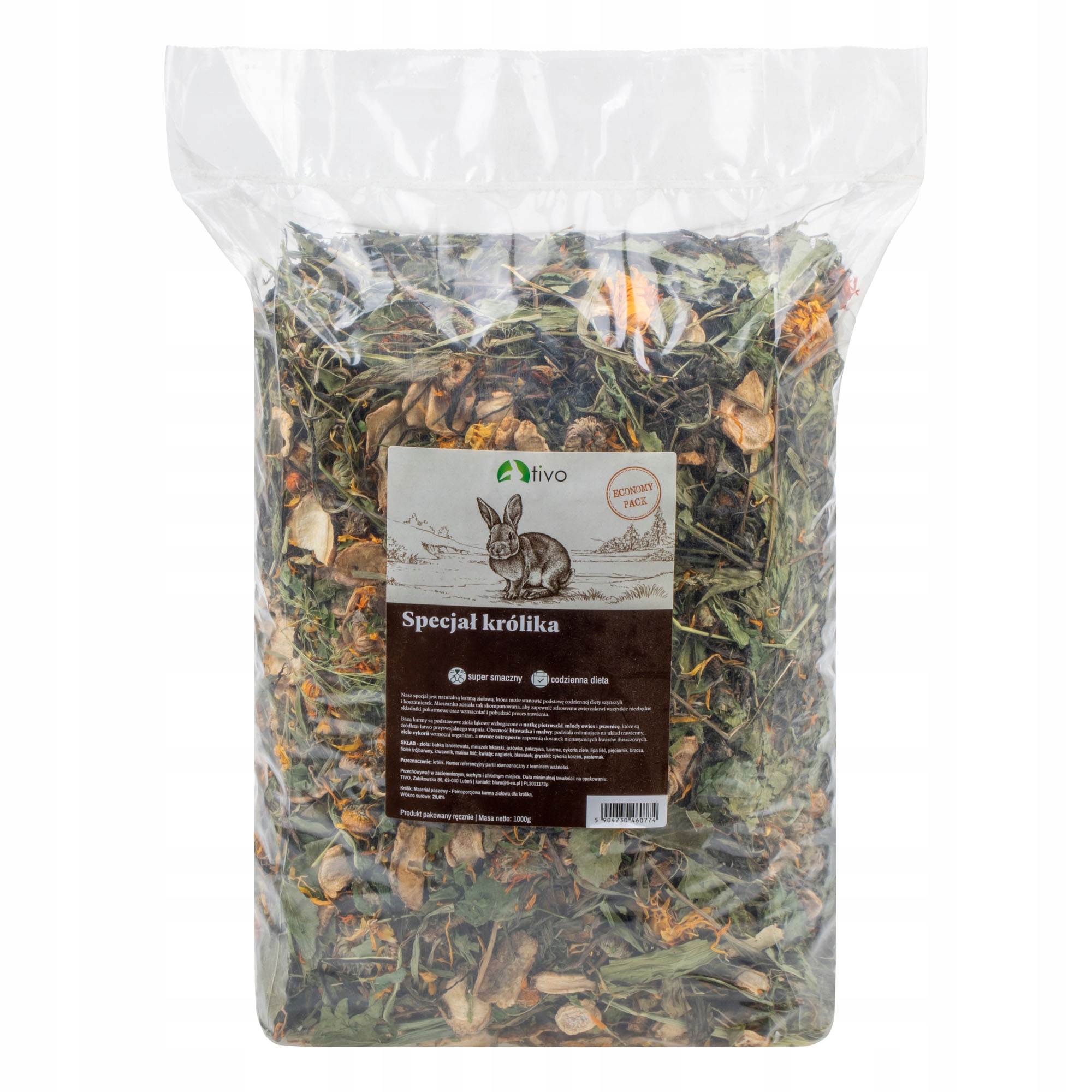 Specjał jest naturalną karmą ziołową, która może stanowić podstawę codziennej diety królika. Mieszanka została tak skomponowana, żeby zapewnić zdrowemu zwierzakowi wszelkie niezbędne składniki pokarmowe oraz wzmacniać i pobudzać procesy trawienia.