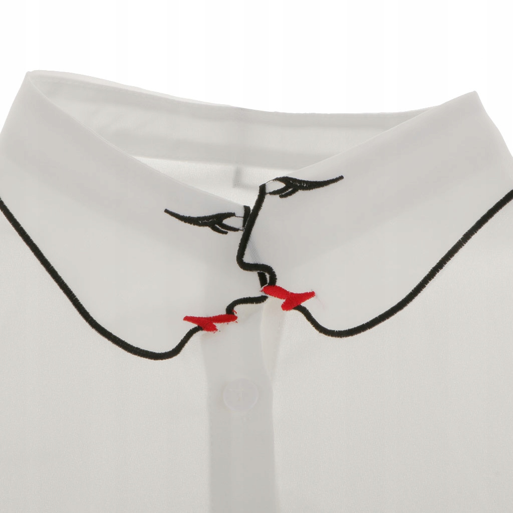 Phenovo Damskie Haftowane Pół Odpinana Faux Kołnierz Biały