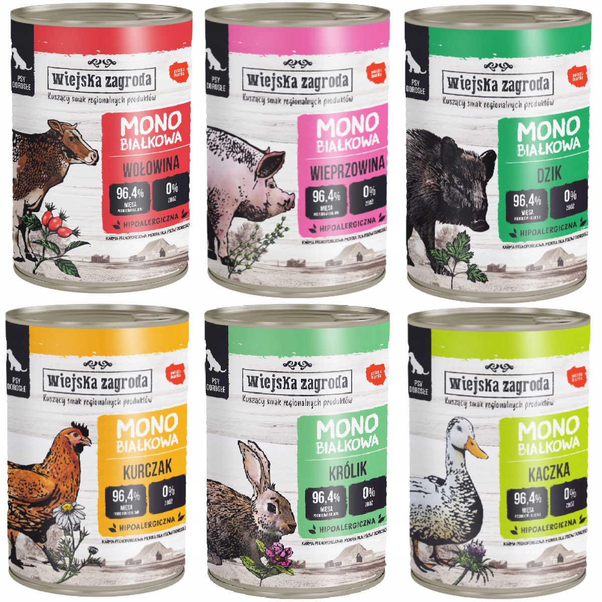 Wiejska Zagroda karma monoproteinowa dla psa mix smaków 6x 400g